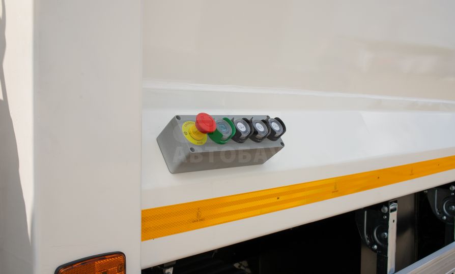Основной бункер разгружается выталкивающей плитой после поднятия заднего борта. Операция осуществляется при помощи рычагов расположенных за кабиной. В процессе разгрузки применяются кнопка «подгазовки» и кнопка «одиночного цикла», необходимая для разгрузки мусора из загрузочного бункера при поднятом загрузочном бункере.