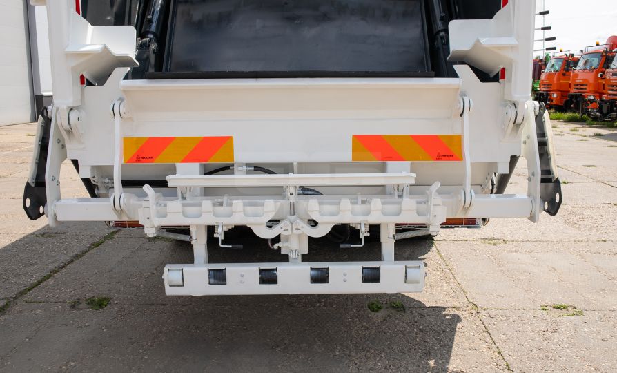Мусоровоз имеет прессующую плиту, изготовленную из высокопрочной стали, выполняющую функцию забора и прессования отходов из загрузочного бункера в основной (приводится в действие четырьмя гидроцилиндрами), и выталкивающую плиту, которая выполняет функцию обратной нажимной пластины и позволяет производить процесс подпрессовки. В зависимости от плотности отходов, коэффициент уплотнения может увеличиваться до 1:6.